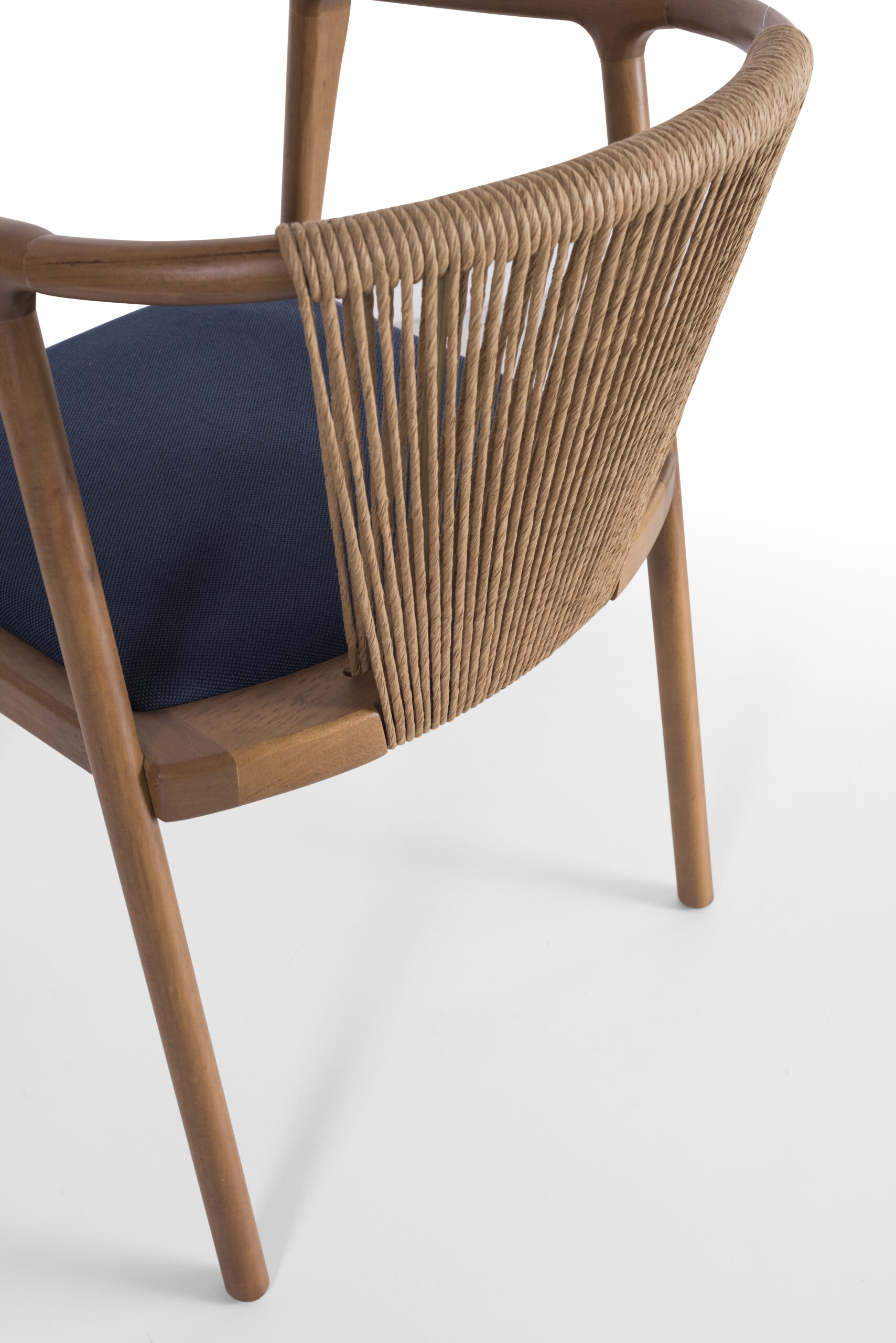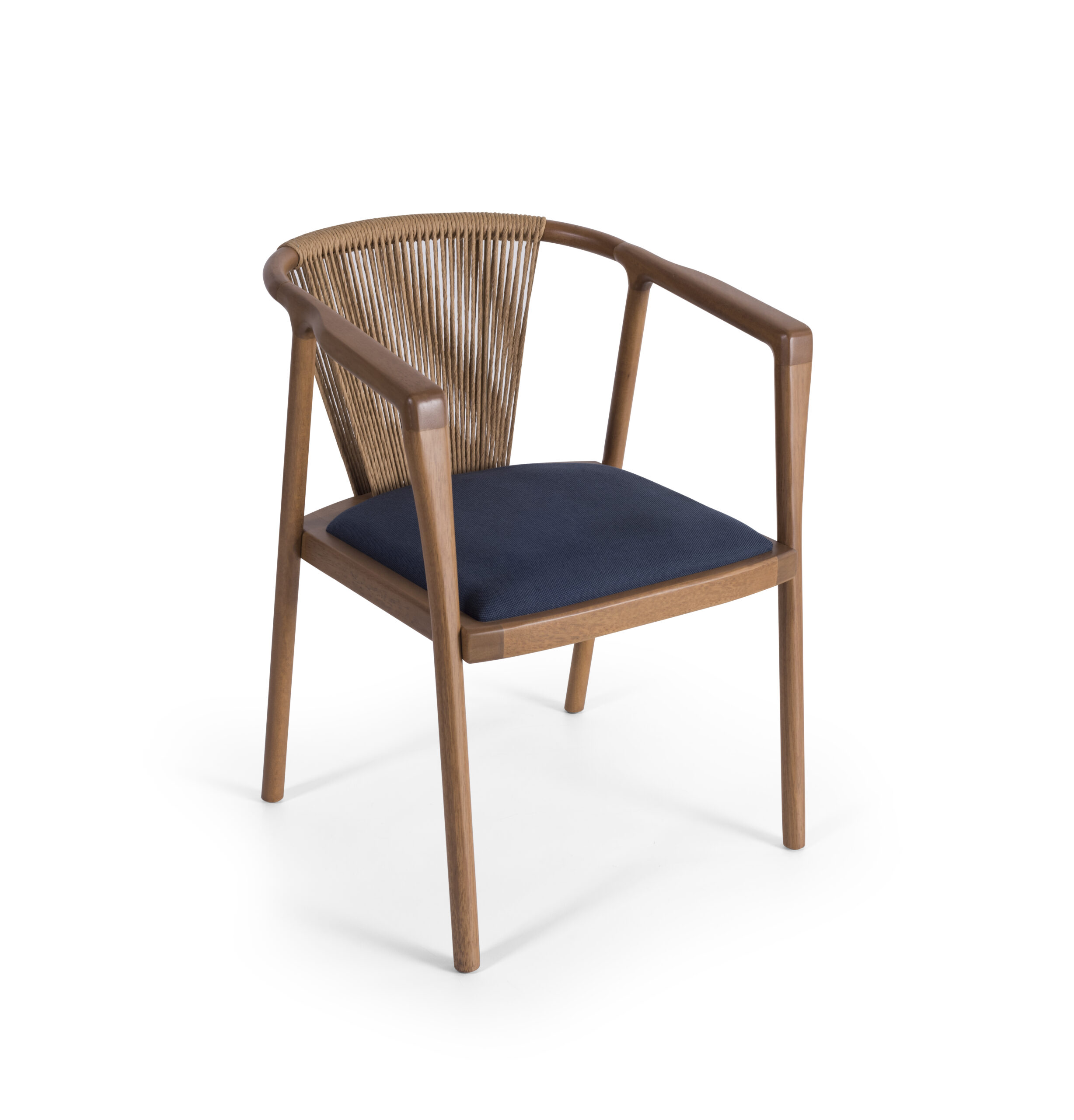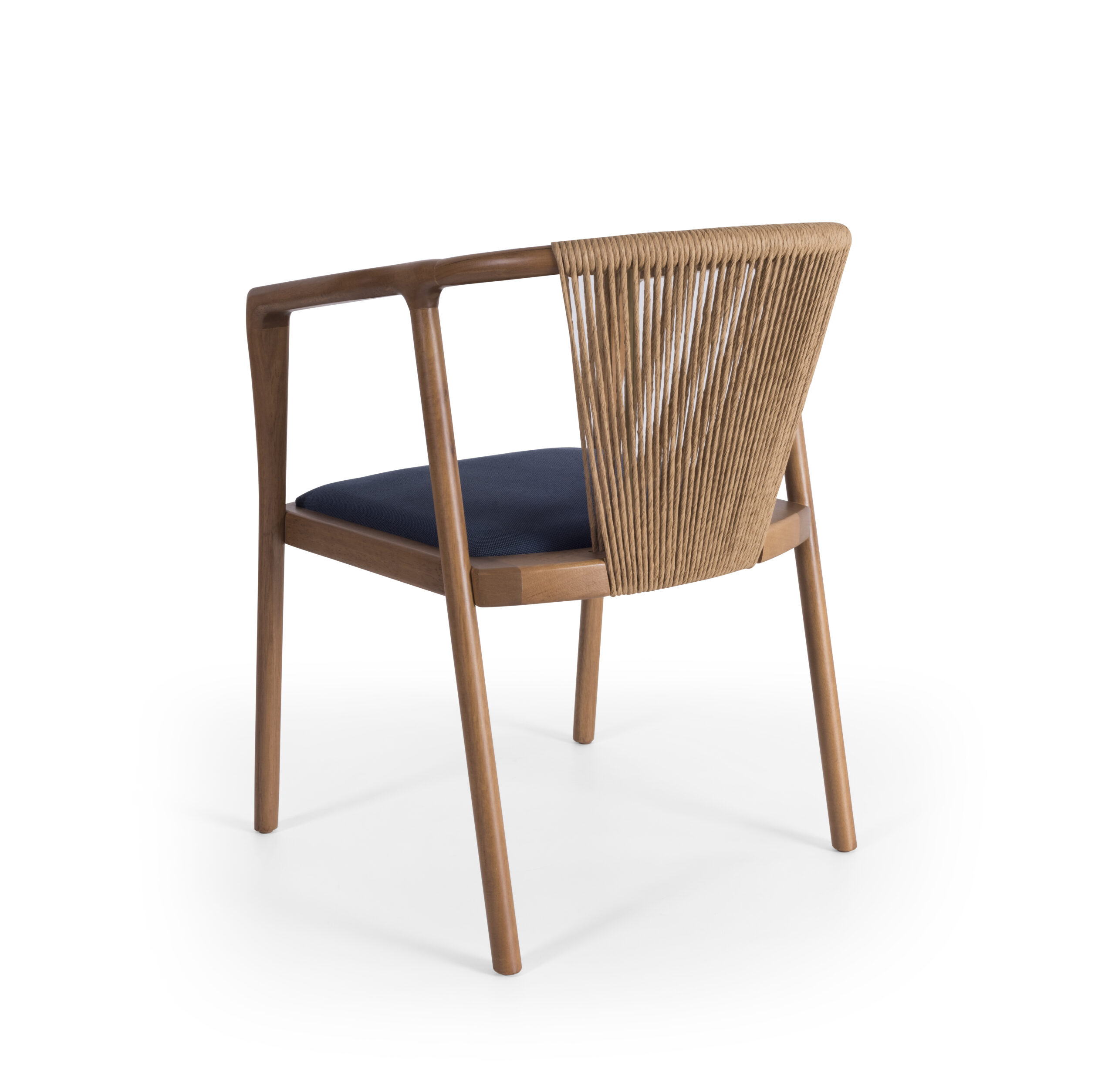 A Cadeira Cordone, assinada pelo designer Ramon Zancanaro, combina a sofisticação das fibras com um acabamento refinado em madeira maciça. Seu desenho moderno e o uso de cordas trançadas no encosto equilibram-se na rusticidade das cordas, integrando-se perfeitamente a ambientes que utilizam cimento aparente, madeira rústica ou cerâmica vietnamita. Ideal para compor espaços com plantas tropicais e quadros botânicos, a cadeira oferece conforto e estilo.