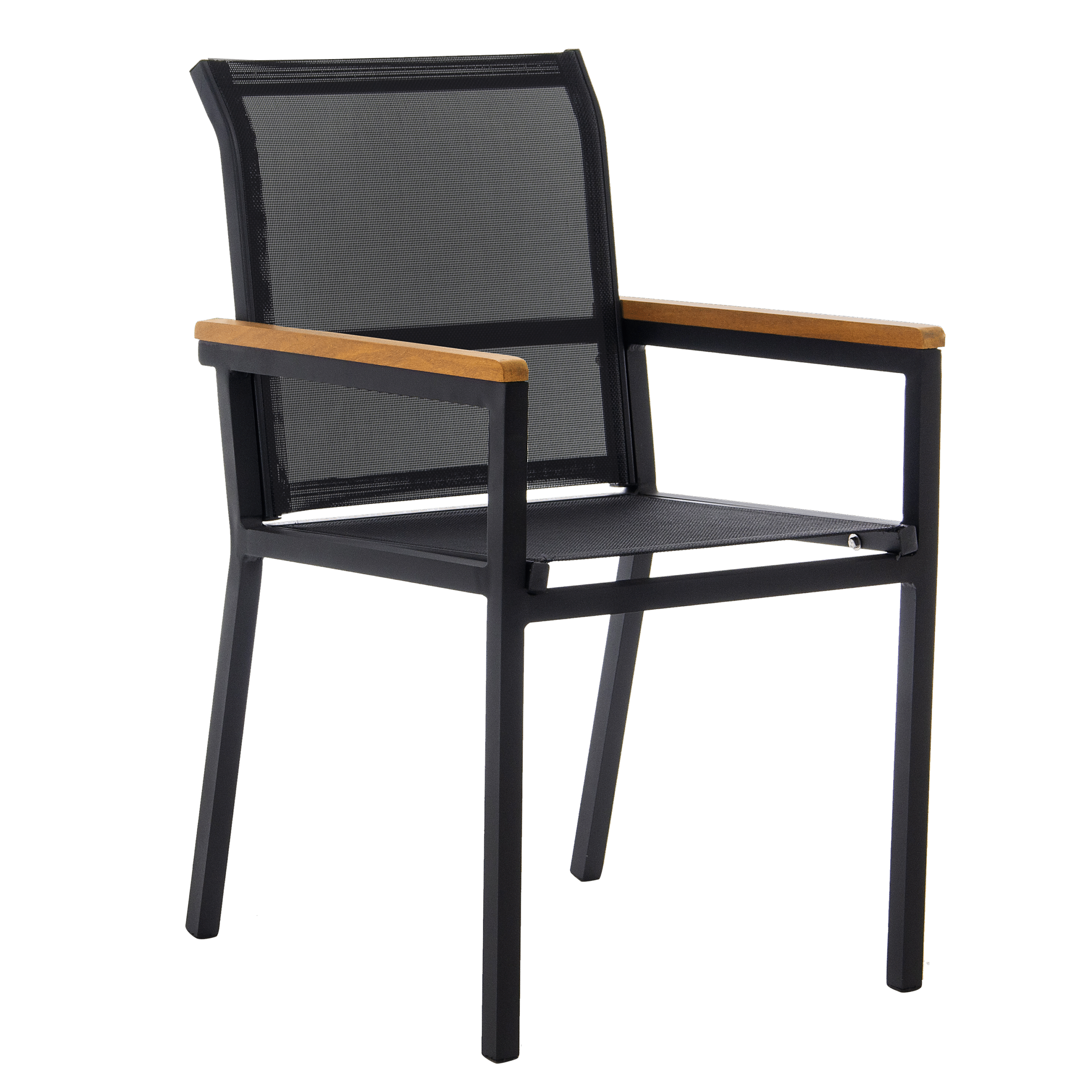 Os braços com detalhes em madeira trazem um toque natural e sofisticado ao design contemporâneo. Ideal para áreas externas, é uma peça durável e elegante, perfeita para compor conjuntos de jantar ou varandas com charme e funcionalidade.