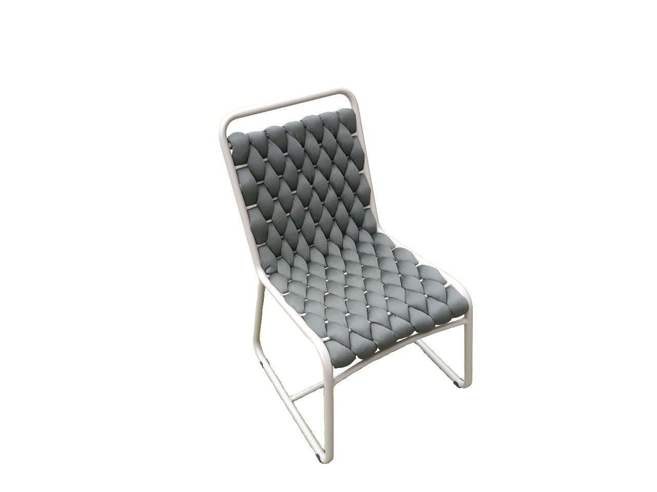 Cadeira de design inovador e leve, com assento trançado que adiciona textura e personalidade. Uma peça versátil, perfeita para compor ambientes com estilo e originalidade.