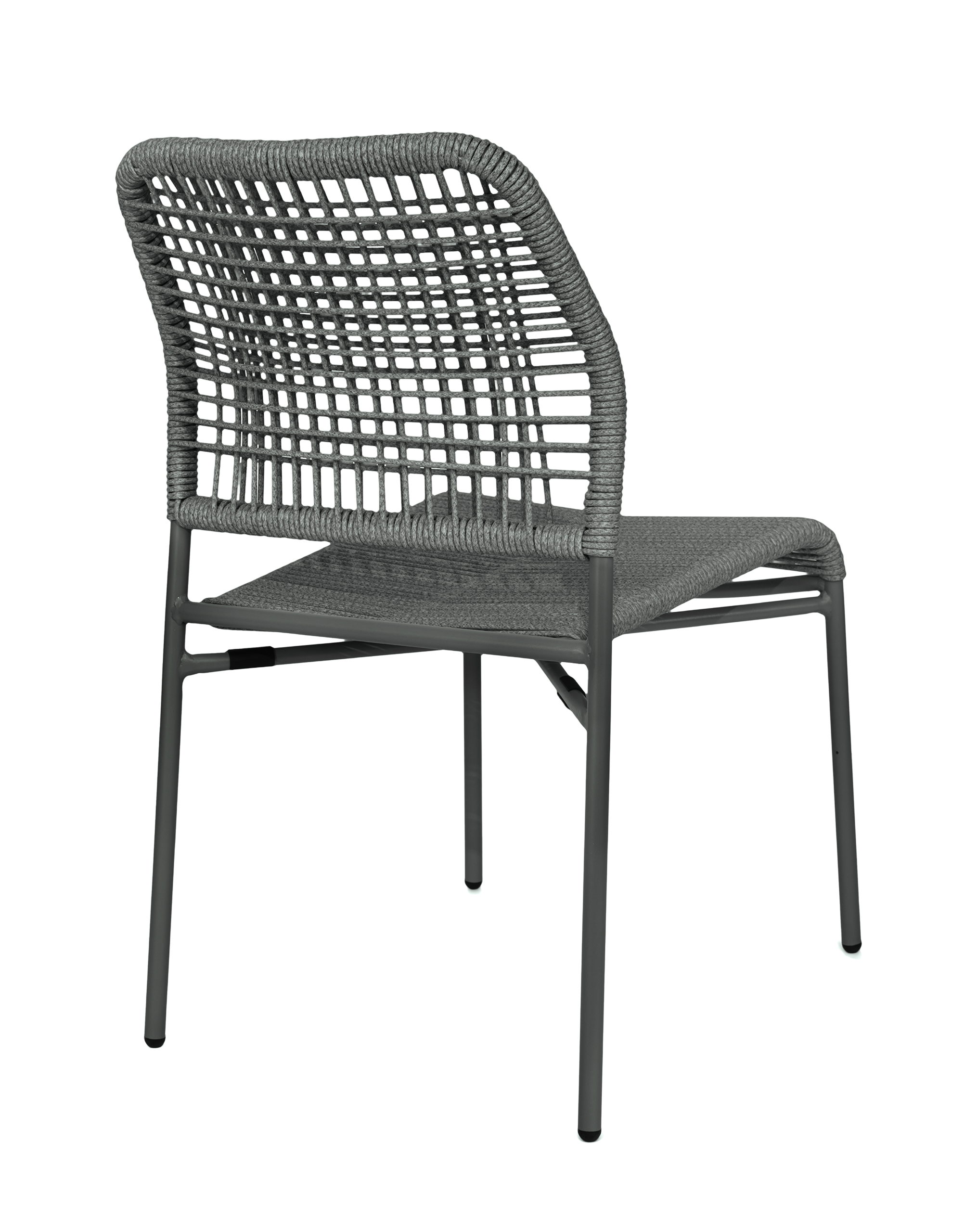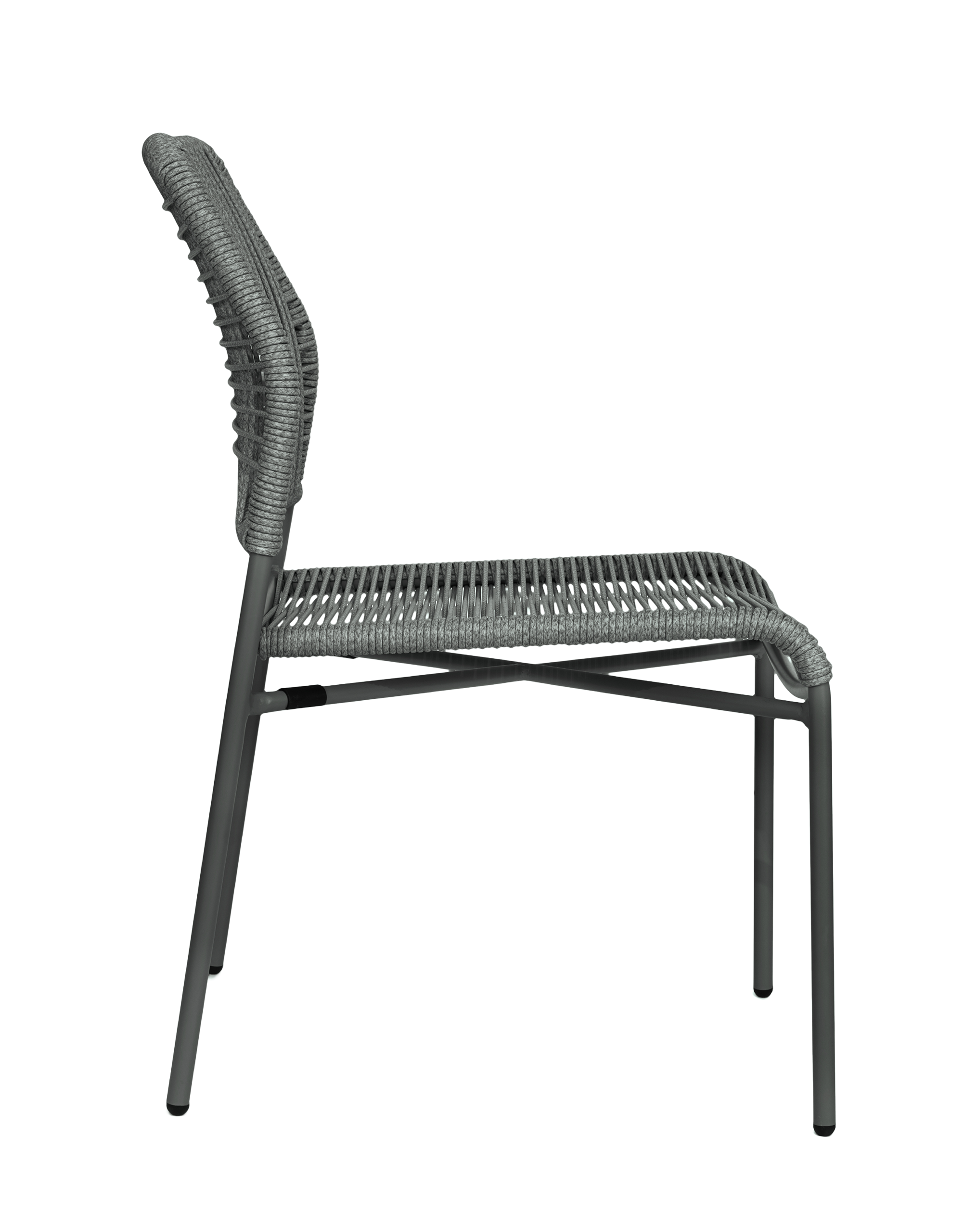 Cadeira leve e moderna em alumínio com corda náutica, ideal para áreas externas com design clean e funcional.