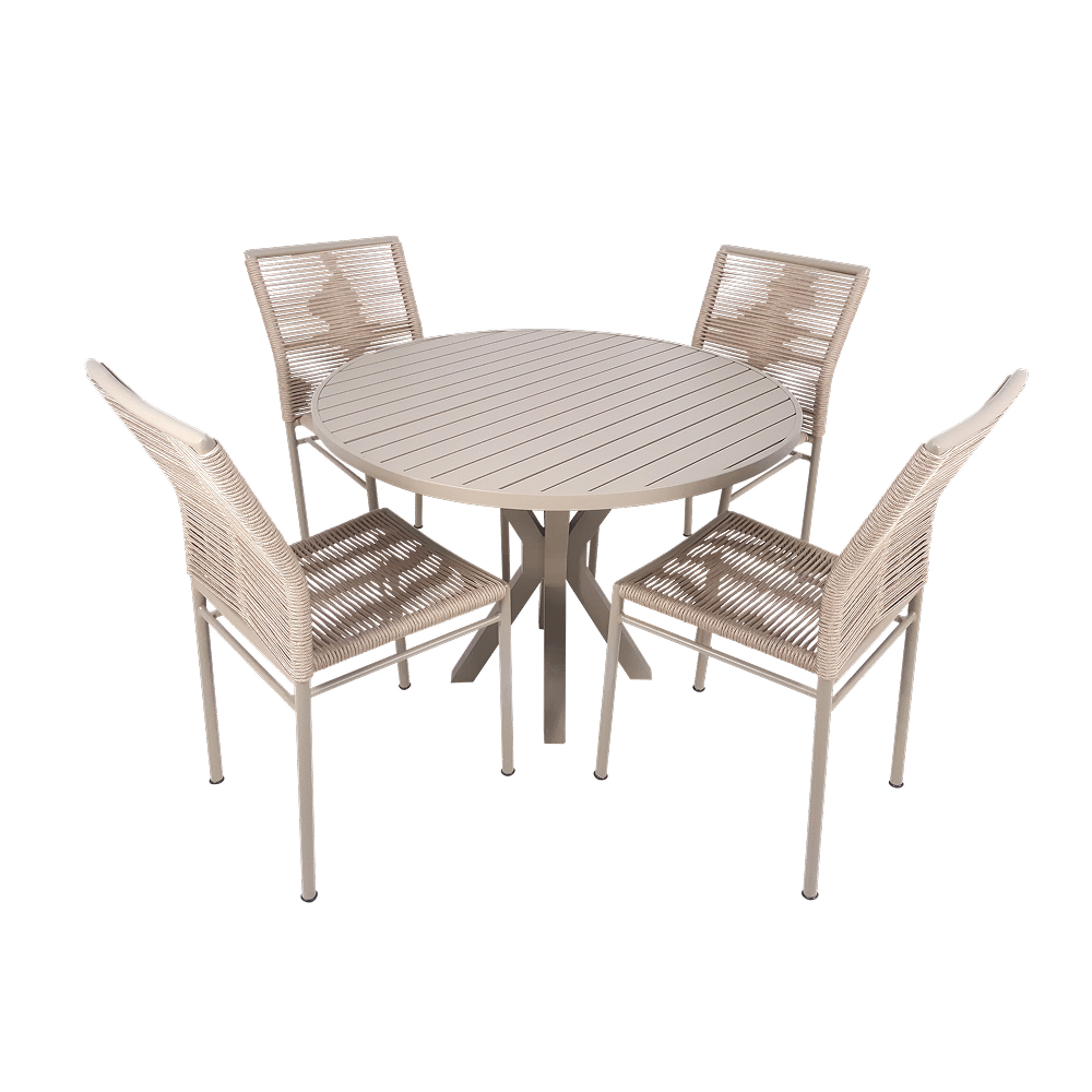 Conjunto de jantar de design leve e natural, com linhas equilibradas e acabamento que valoriza a simplicidade elegante. Ideal para criar espaços convidativos e cheios de charme.