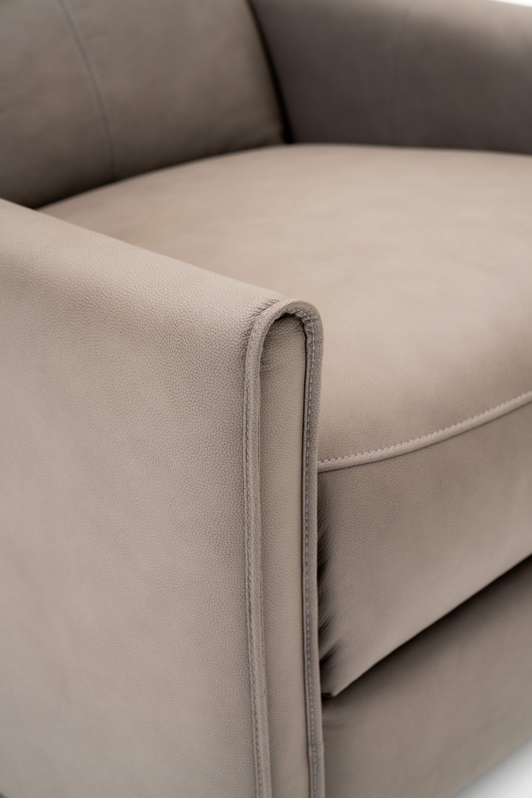 Assento: Espuma D-28 Soft envolta em manta de fibra siliconizada, garantindo conforto firme e aconchegante.