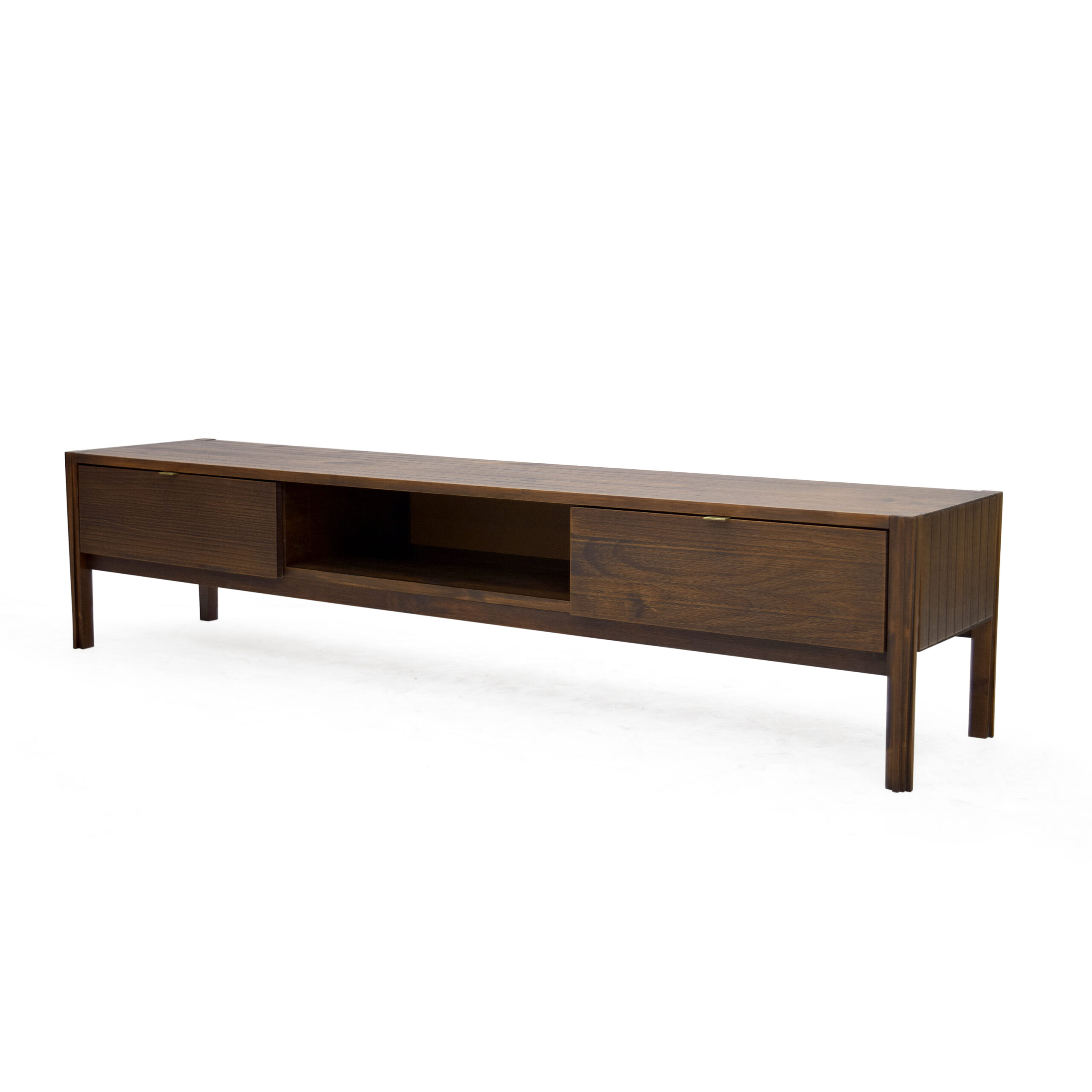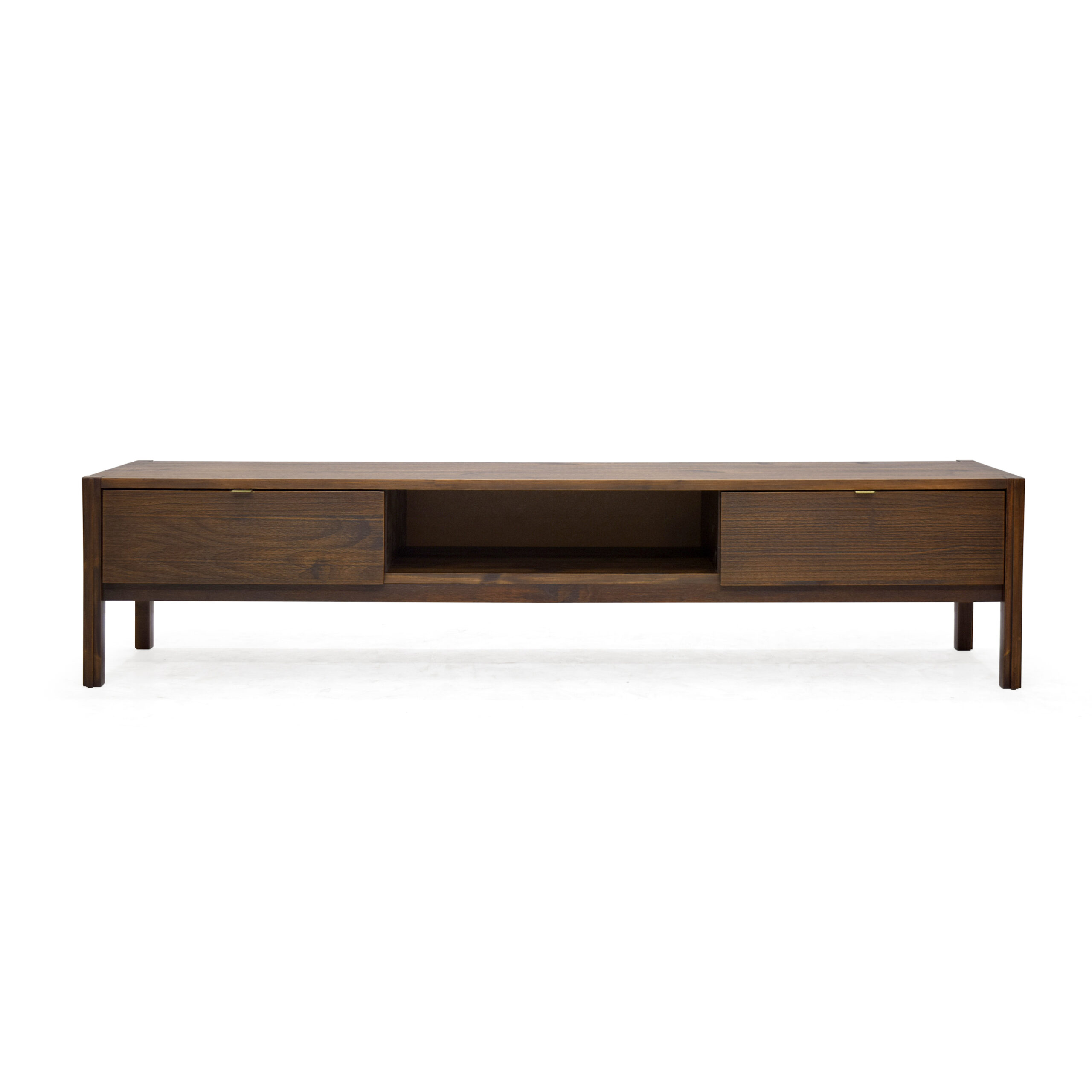 Rack com design contemporâneo em madeira maciça, acabamento sofisticado e funcionalidade para sua sala de estar.
