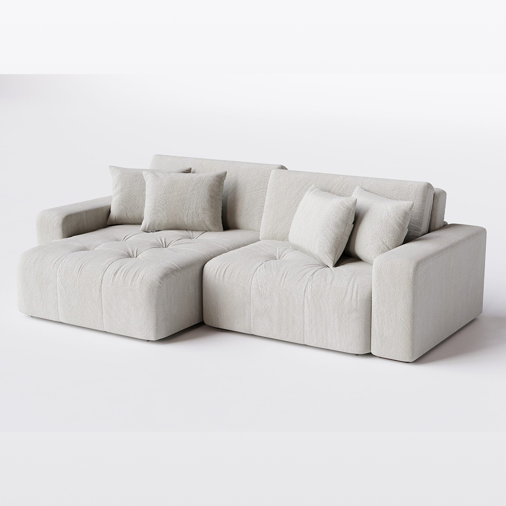 Encosto: Almofadas fixas ou soltas em fibra siliconizada, proporcionando apoio ergonômico e toque macio.